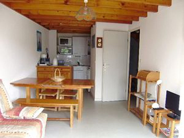Appartement 2 pièces pour 2/4 personnes, de 35m², composé d'une entrée avec placard, d'un séjour avec canapé clic-clac (2 personnes), une kitchenette, une chambre avec un lit double, une salle de bains avec douche et des WC séparés.L'appartement dispose également d'une jardin clos et d'une place de parking numérotée.