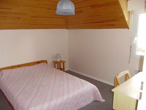 Appartement 3 pièces de 50m² pour 4/6 personnes, composé d'une entrée avec un placard, d'un séjour avec un canapé BZ, d'une kitchenette, d'une chambre avec un lit double, d'une salle de douche avec WC et d'un balcon.A l'étage, une salle de douche, une chambre avec un lit simple et 2 lits superposés.A l'extérieur, une place de parking numérotée.