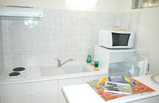 L'appartement dispose d'une cuisine entièrement équipée avec hotte aspirante, réfrigérateur, 2 plaques de cuisson, un micro-ondes et un congélateur. Il dispose également d'une télévision. Le Pool House est équipé d'un évier, d'un réfrigérateur et d'un micro-ondes.