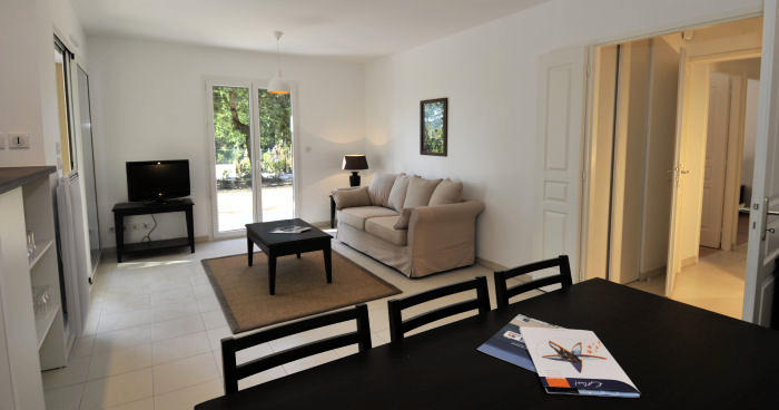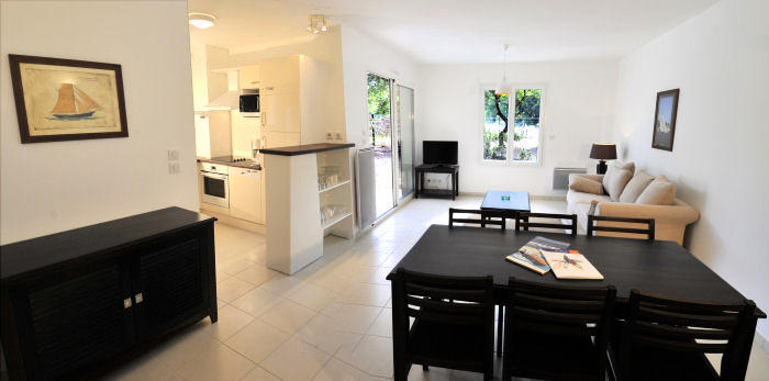 2 pièces de 30m² pour 2 personnes composé d'un séjour avec canapé convertible en couchage pour deux personnes, d'une cuisine entièrement équipée, d'un coin repas, d'une salle de bain avec WC séparés. Terrasse.