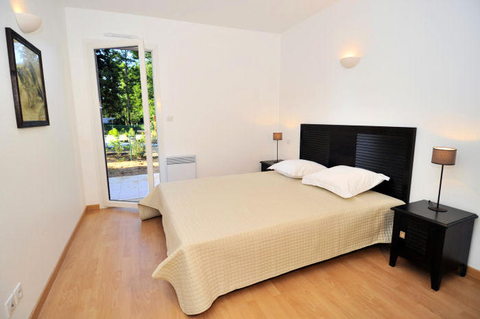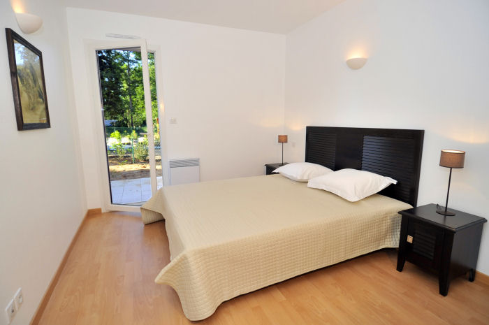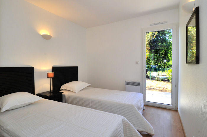 Appartement 2 pièces pour 4 à 6 personnes de 66m² composé d'une chambre comprenant un lit double (160cm), d'une seconde chambre comprenant deux lits simples (90cm), d'un séjour confortable avec canapé-lit 2 couchages, d'une kitchenette entièrement équipée, d'une salle de bains et de WC séparés. Balcon ou terrasse/jardinet avec mobilier de jardin.