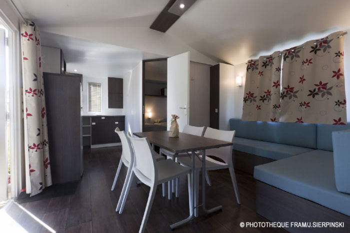 Pour avoir plus de détails et réserver cet hébergement, choisissez une date ci-dessus et cliquez sur voir l'offre ! Vous serez redirigé vers le site proposant la location.Lodge 3 pièces pour 5 personnes de 38m² environ, composé d'une chambre avec 1 lit double (160*190), d'une chambre avec 3 lits simples (80*190) dont 1 superposé, d'un coin salon avec télévision, d'un coin cuisine équipé, d'une salle de douche avec WC et d'une terrasse couverte.