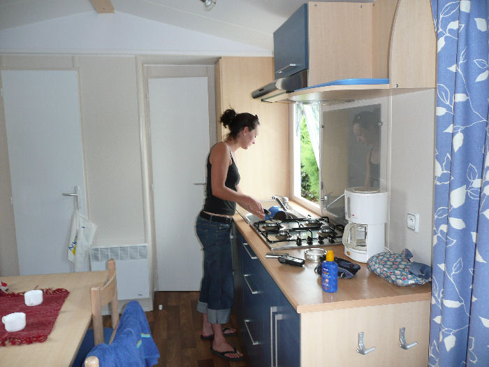 24 m2 de surface nombre de chambres : 2 1 Chambre avec 1 Lit double 1 Chambre avec 2 Lits simples 1 S?jour avec 1 Canap? lit Kitchenette ?quip?e nombre de salles de douche : 1 nombre de WC s?par?s : 1 Terrasse Plaques gaz Micro-ondes R?frig?rateur Vaisselle et ustensiles de cuisine inclus Chaise longue Salon de jardin