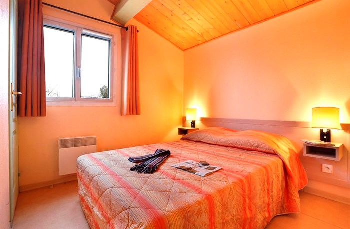 Pour avoir plus de détails et réserver cet hébergement, choisissez une date ci-dessus et cliquez sur voir l'offre ! Vous serez redirigé vers le site proposant la location.Couchage 1 Chambre avec : 1x Lit double1 Chambre avec : 1x Lit doubleLinge de lit : Inclus : oreillers, couverturesEn supplément (sur demande) : draps (12? par lit) Pièce commune Couchage : 1x Banquette convertible 140x190Cuisine : Type : EquipéeEquipement : réfrigérateur, micro-ondes, cafetière électrique, lave vaisselle, plaques de cuisson, four, vaisselle, ustensiles de cuisineSanitaires 1 Salle de bain : douche1 WC : séparé Extérieurs Terrasse sur-élevée couverteEquipement : salon de jardin Animaux Animal accepté en supplément (46? par semaine) (chien, chat)Nombre maximum : 1Carnet de vaccination obligatoire. Animal de 1ère et 2nde catégorie non admis.Charges courantes Électricité : inclusEau : inclus Informations complémentaires Stationnement inclus : Cautions : Hébergement 300? - Ménage de fin de séjour 120? (cb)Suppléments obligatoires : Ménage de fin de séjour en supplément (90? par séjour)Options facultatives : Télévision inclusPour les options non réservables en ligne, veuillez nous contacter.Stationnement inclus : Parking extérieur, 1 place par hébergementPack sérénité sur demande : lits faits à l'arrivée + linge de toilette + ménage de fin de séjour : 150?.Etat des lieux obligatoire pour la restitution de la caution (RDV à prendre à la réception, à l'arrivée).