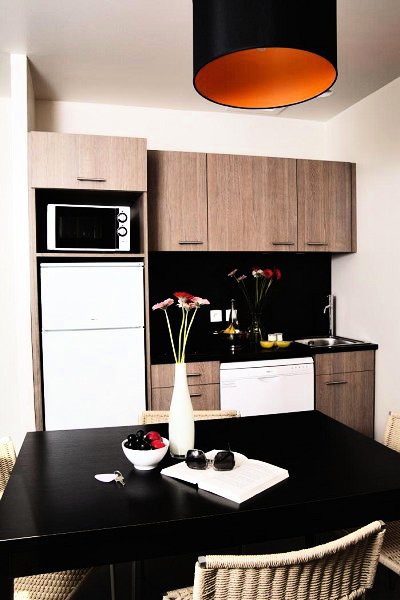Le logement est équipé des plaques vitrocéramiques, d'un four micro-ondes, d'un réfrigérateur-congélateur, d'un lave-vaisselle, d'une cafetière électrique et d'un grille pain.Il comporte également une télévision écran plat, d'un coffre fort (payant) et un aspirateur.Les draps et les couettes sont fournis.