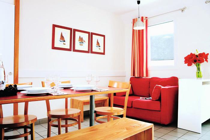 Pour avoir plus de détails et réserver cet hébergement, choisissez une date ci-dessus et cliquez sur voir l'offre ! Vous serez redirigé vers le site proposant la location.Petite maison de 48m² pour 4 à 5 personnes située dans le bâtiment du Castel, composée d'un séjour avec un canapé-lit (1 couchage) dans certains logements,d'une kitchenette équipée, de deux chambres avec 2 lits simples à l'italienne chacune convertibles en un lit double et de deux salles de bains avec douche et baignoire et WC et d'un jardinet ou d'un balcon.