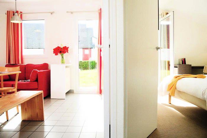 Logement de 48m² pour 4 personnes et un enfant de moins de 10 ans, composé d'une kitchenette équipée, d'un séjour, d'une chambre avec un lit double, d'une chambre avec 2 lits simples et un lit gigogne (couchage enfant moins de 10 ans), de 2 salles de bains avec douche et baignoire et WC et d'un jardinet ou d'un balcon.L'ajout d'un lit bébé est possible.Le logement peut accueillir 4 personnes + un enfant de moins de 10 ans + un bébé de moins de 2 ans. La 6ème personne ne peut pas être un adulte ni un enfant mais uniquement en bébé de moins de 2 ans.
