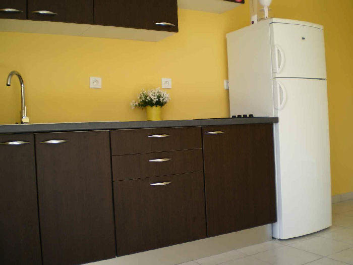 L'appartement est équipé d'une plaque de cuisson vitrocéramique, d'un réfrigérateur et de tous les ustensiles de cuisine.Les couvertures, oreillers, draps ne sont pas fournis.L'extérieur possède un salon de jardin.