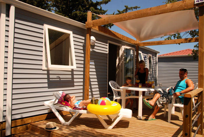 Pour avoir plus de détails et réserver cet hébergement, choisissez une date ci-dessus et cliquez sur voir l'offre ! Vous serez redirigé vers le site proposant la location.Mobil home climatisé pour 6 personnes, composé d'un séjour avec banquette lit 2 personnes et téléviseur, cuisine équipée et d'une chambre avec un lit double, d'une chambre avec 2 lits simples séparés (possibilité d'avoir des lits superposés) , d'une salle de bains avec douche, d'un WC séparé et d'une terrasse.