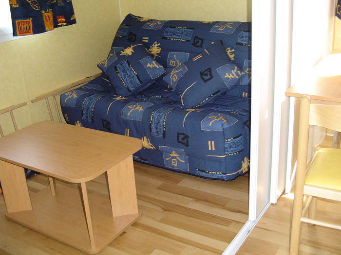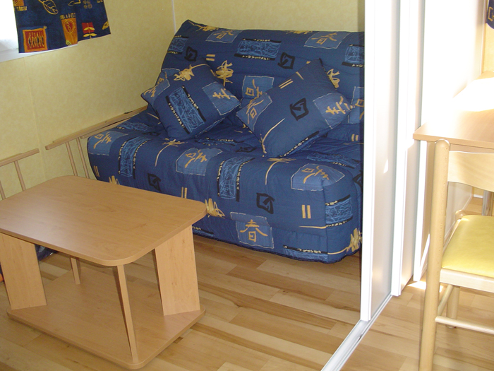 Pour avoir plus de détails et réserver cet hébergement, choisissez une date ci-dessus et cliquez sur voir l'offre ! Vous serez redirigé vers le site proposant la location.Mobil Home 2/4 personnes de 23m², composé d'une chambre avec 2 lits simples, d'un séjour qui se ferme avec une porte coulissante avec un canapé BZ convertible, d'une cuisine, d'une salle de bain, de toilettes et d'une terrasse non couverte.