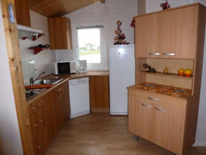Le chalet comprend une cuisine équipée avec réfrigérateur, micro-ondes et cafetière électrique ainsi que tous les ustensiles de cuisine nécessaire et la vaisselle. Le logement dispose également d'une télévision et d'une terrasse couverte composée d'un salon de jardin et d'un parasol (sur demande).