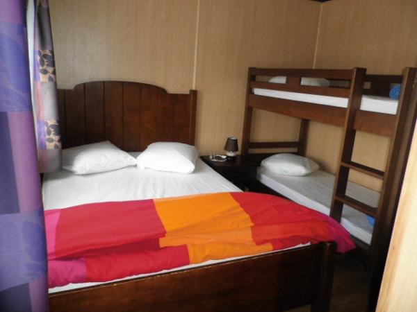 Pour avoir plus de détails et réserver cet hébergement, choisissez une date ci-dessus et cliquez sur voir l'offre ! Vous serez redirigé vers le site proposant la location.Chalet 3 pièces pour 4 personnes de 20m² SANS SANITAIRES , composé d'une chambre avec un lit double, d'une chambre avec un lit simple et lits superposés, d'un coin repas, d'une cuisine équipée, de WC et d'une terrasse non couverte.