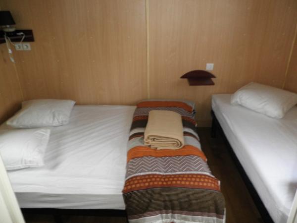 Pour avoir plus de détails et réserver cet hébergement, choisissez une date ci-dessus et cliquez sur voir l'offre ! Vous serez redirigé vers le site proposant la location.Chalet 2/3 personnes de 18m², composé d'une chambre avec 2 lits simples, d'un séjour avec un lit de 2 personnes, d'une cuisine, d'une salle de bains, de toilettes et d'une terrasse couverte.