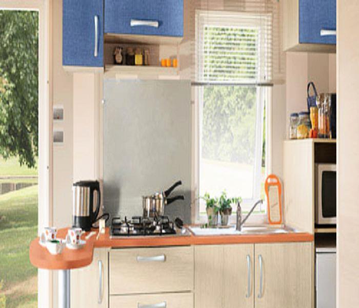 Mobil home de 28m² de 3 pièces pouvant accueillir 6 personnes. Il est composé d'un séjour transformable en couchage pour deux personnes, d'un coin cuisine, d'une chambre avec 1 lit double (140cm), d'une chambre avec 2 lits simples (80cm) jointifs et d'une salle de bain avec douche et toilettes séparés.