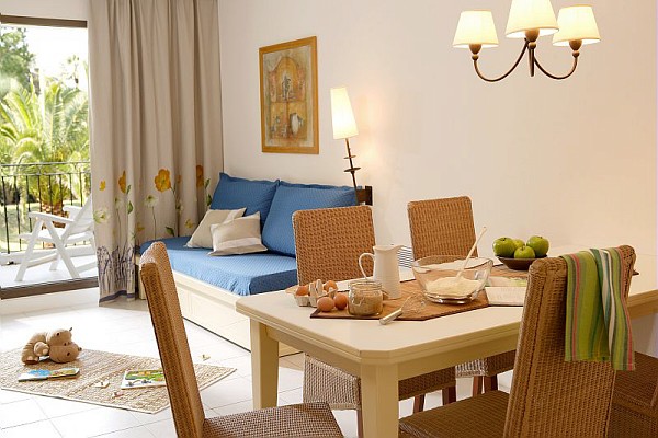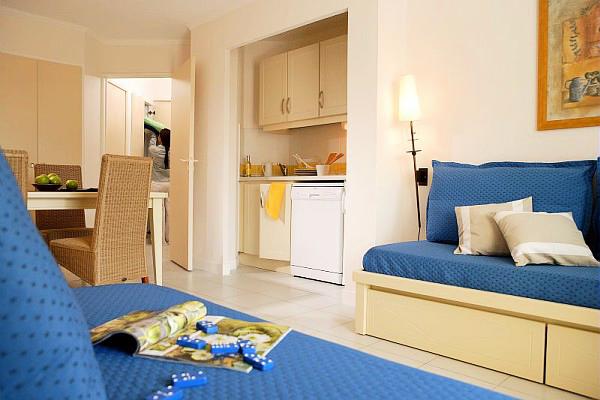 Appartement avec un coin cuisine entièrement équipé de 4 plaques vitrocéramiques, d'un réfrigérateur, d'un micro-ondes, d'un lave-vaisselle ainsi que d'une cafetière électrique. Téléphone (payant, télévision écran plat, coffre-fort (payant). Balcon ou terrasse avec table et chaises de jardin.