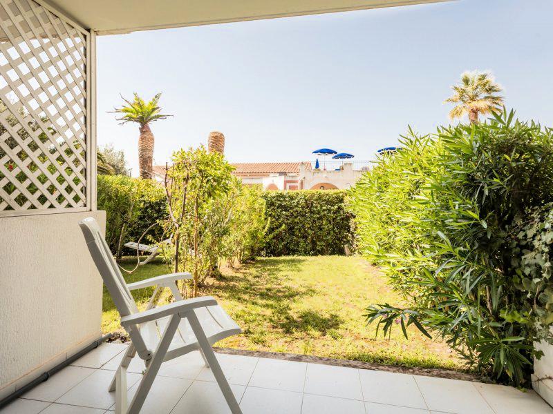 Appartement de trois pièces pour six ou sept personnes d'environ 32m² comprenant un séjour avec deux banquettes lits simples dont une avec un lit-gigogne, une chambre avec un lit double, une cabine avec deux lits superposés, une kitchenette équipée, une salle de bains et des toilettes. A noter: Cet hébergement est un duplex bénéficiant d'une chambre matrimoniale et d'un jardin privatif