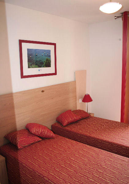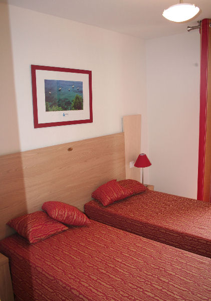 Pour avoir plus de détails et réserver cet hébergement, choisissez une date ci-dessus et cliquez sur voir l'offre ! Vous serez redirigé vers le site proposant la location.3 Pièces 6 Personnes de 50 m² environ, composé d'un séjour avec un canapé lit convertible pour 2 personnes, d'une chambre avec un lit double en 140cm, d'une autre chambre avec 2 lits simples, d'une kitchenette équipée, d'une salle de bains et de toilettes séparés.Tous les appartements disposent soit d'un rez de jardin soit d'une terrasse équipée d'un salon de jardin.