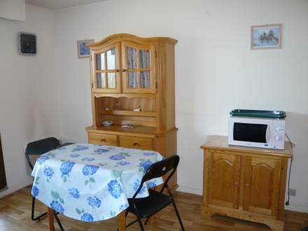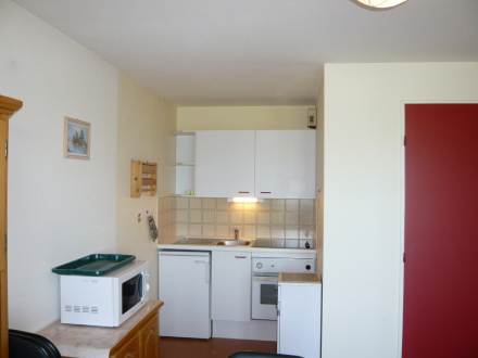 Apt 2 pièces 28 m2 au 3ème étage, situation est: séjour/salle à manger avec 1 divan-lit double (130 cm). Sortie sur la loggia. 1 chambre avec 1 grand-lit (140 cm), salle de bains. Coin cuisine (4 plaques de cuisson, four, plaque vitro céramique, four micro-ondes, cafetière électrique). WC séparé. Chauffage électrique. Meubles de terrasse. Vue éloignée sur le lac et les alentours. A disposition: fer à repasser. Place de parking No 288. Maximum 1 animal/ chien autorisé.