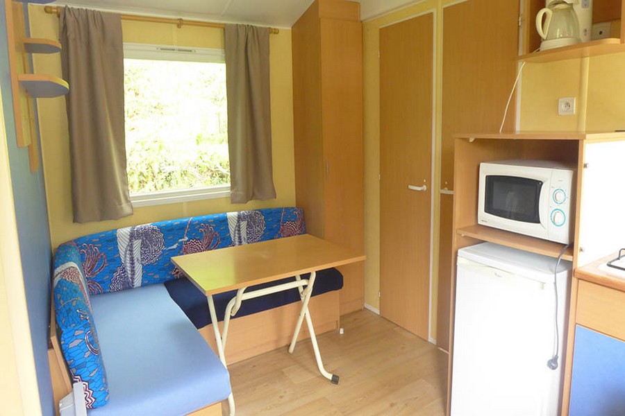 Le Mobil Home comprend une cuisine tout équipé avec gaz, réfrigérateur, cafetière électrique, ustensiles et vaisselle nécéssaire pour le nombre de personne.